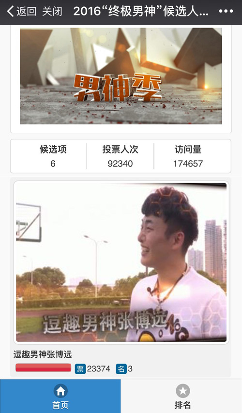 2016年3月,湖南卫视《先锋乒羽锋云会》栏目发起“男神季”真人秀特别策划,在全国范围内甄选羽球男神人选,最终,10位业余界颜值高、球技高、人气高的“男神”参与到了节目拍摄之中。经过近四个月的节目播出,10位选手均累积了大累粉丝与人气,节目组与投票吧合作搭建线上投票平台,通过微信投票选出两位人气最高的男神直接入围“终极羽球男神”总决赛,同时也为节目提升了人气。