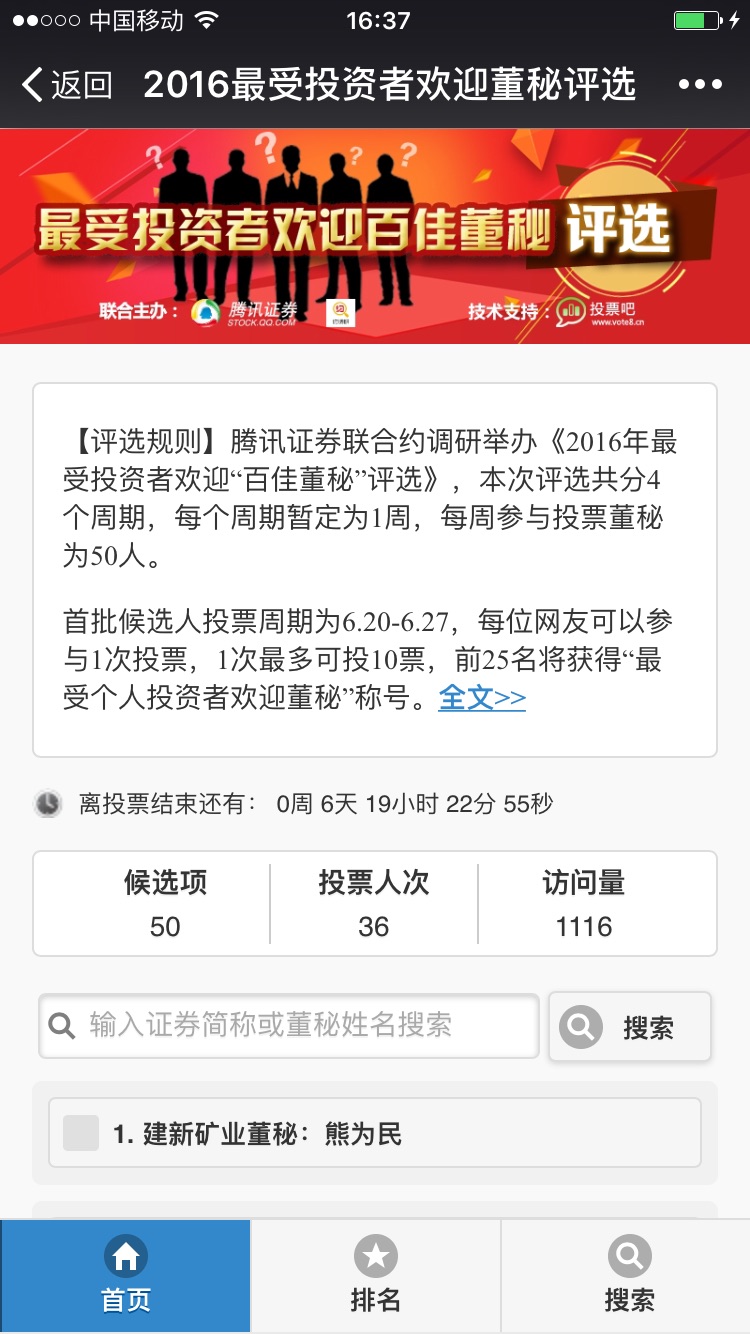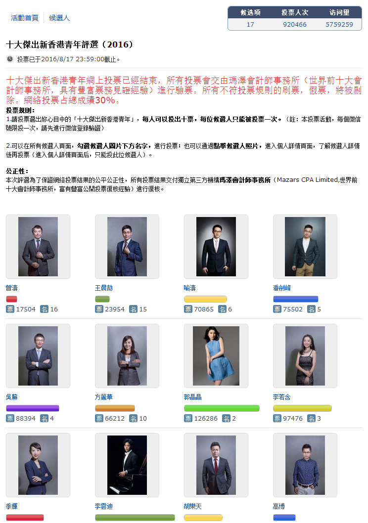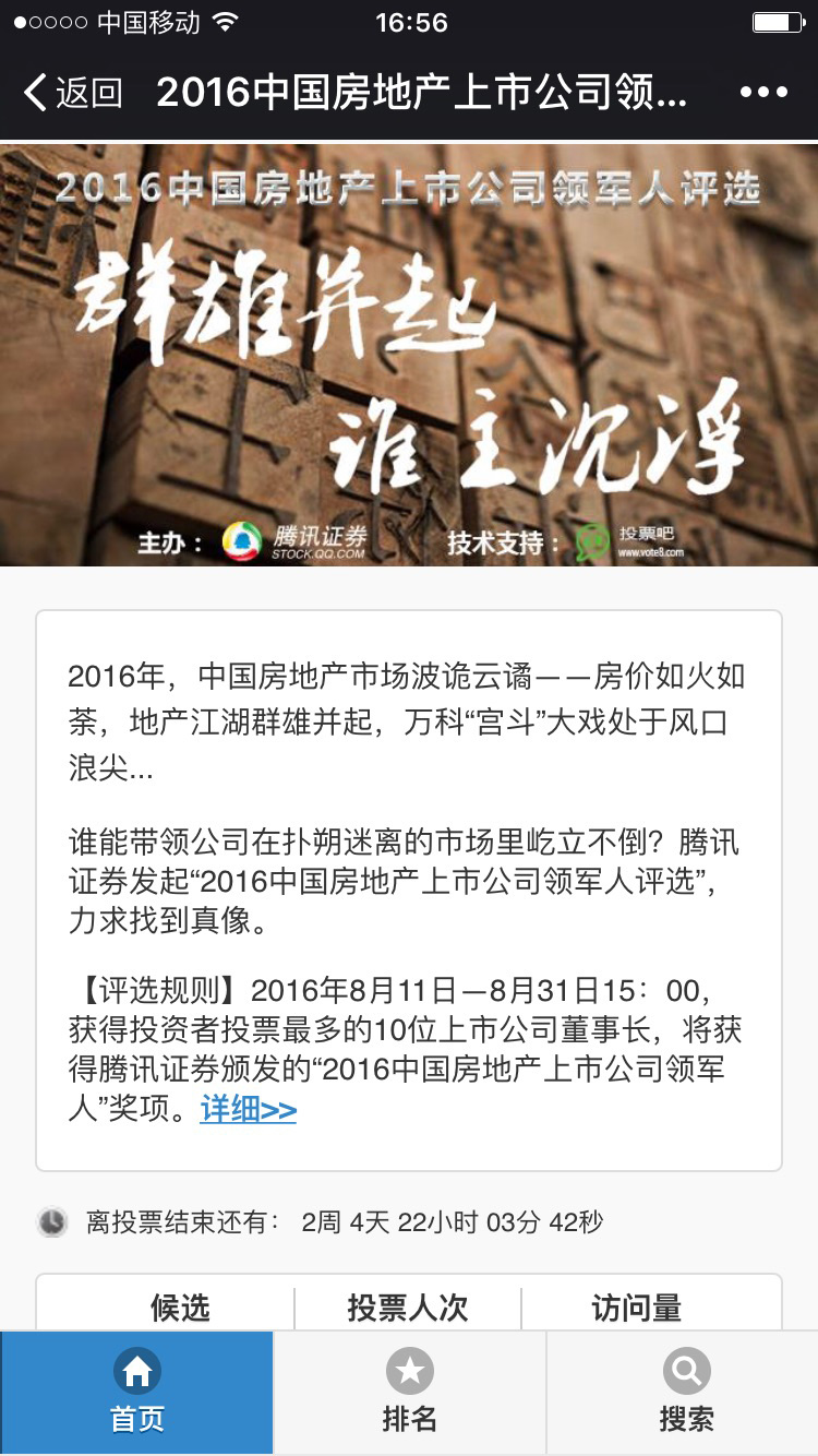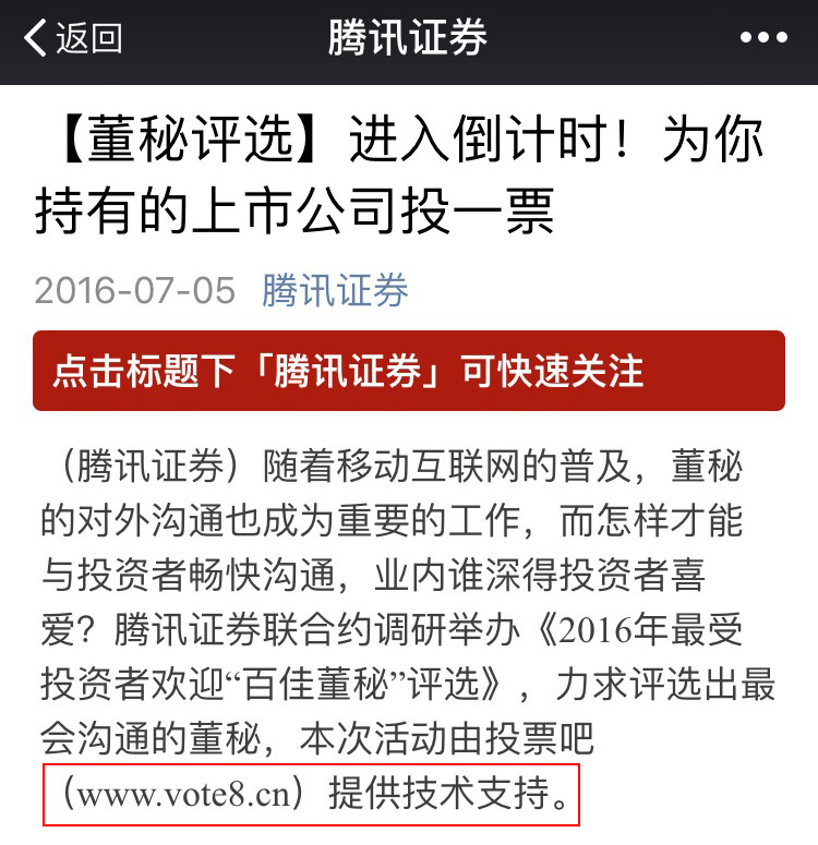 腾讯证券随后还进行了“2016领军人评选”等一系列的大型投票活动,都选用了投票吧作为微信投票平台。