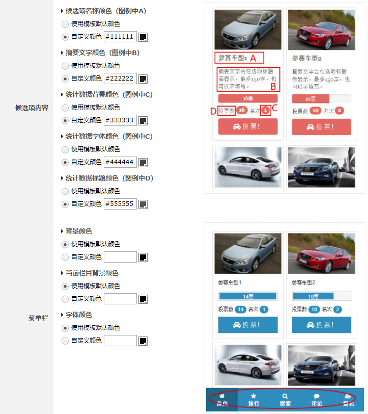 我们还提供了投票按钮的文字、图标修改,投票候选项的称谓修改等一些细致的个性化定制功能。