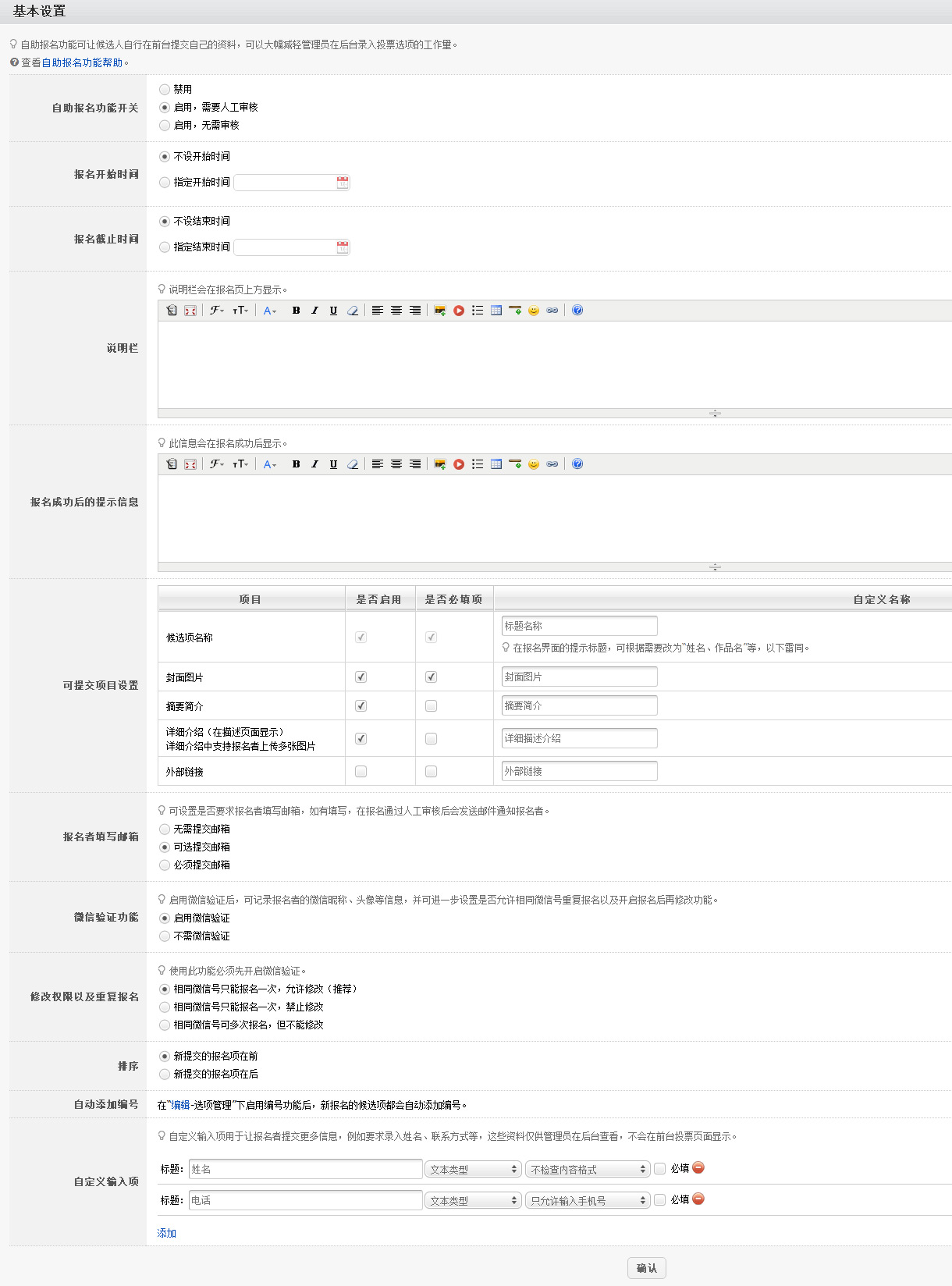 报名功能设置