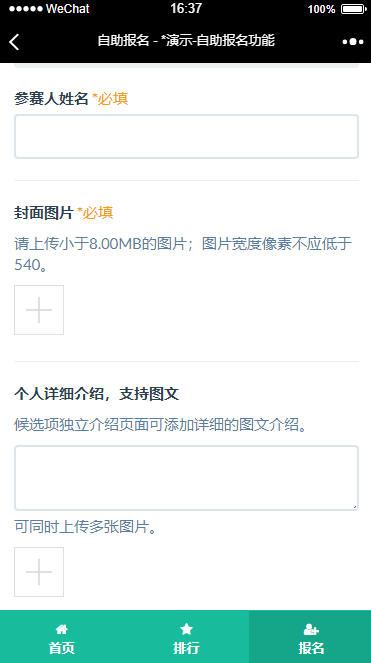 “报名功能”是指投票的候选项是开放由普通用户自己提交的,而无需管理人在后台人工管理录入。这对候选项众多,需要广泛征集候选项的投票活动特别有用。